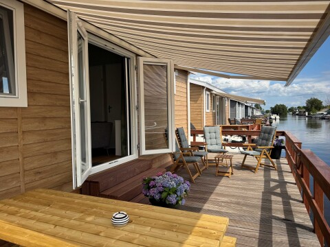 Vanuit dit vakantiehuis in Breukelen geniet u met familie en vrienden van een mooi uitzicht op het water.